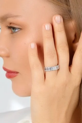 Baget taşlı yüzüklerde detaylı temizlik için yumuşak fırça kullanılabilir