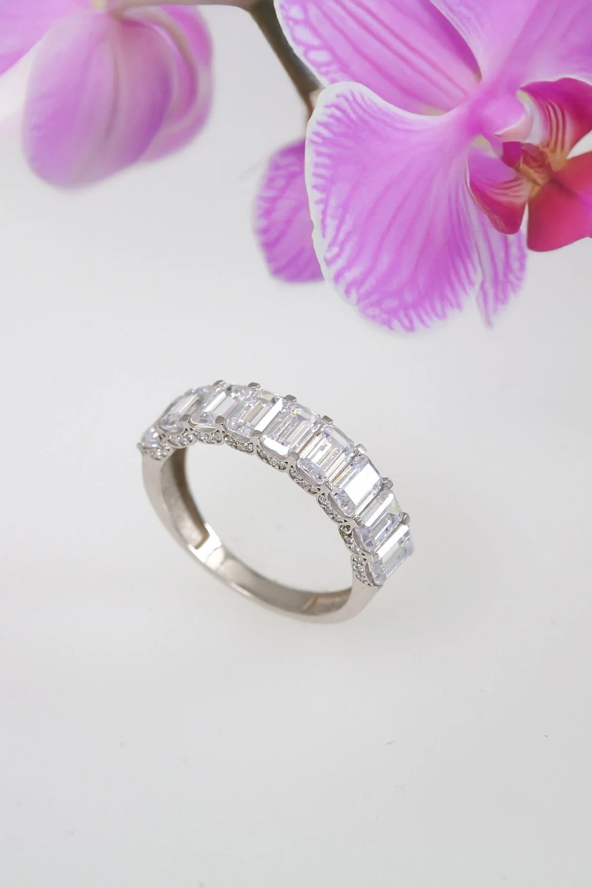 14 Ayar Altın Yarım Tur Baget Yüzük, 14 ayar altının göz kamaştırıcı parlaklığını yarım tur formunda dizilmiş baget taşların sofistike ışıltısıyla buluşturan özel bir tasarımdır. Hem günlük kullanımda sade bir şıklık sunar hem de özel günlerde sofistike bir tamamlayıcı olarak öne çıkar.