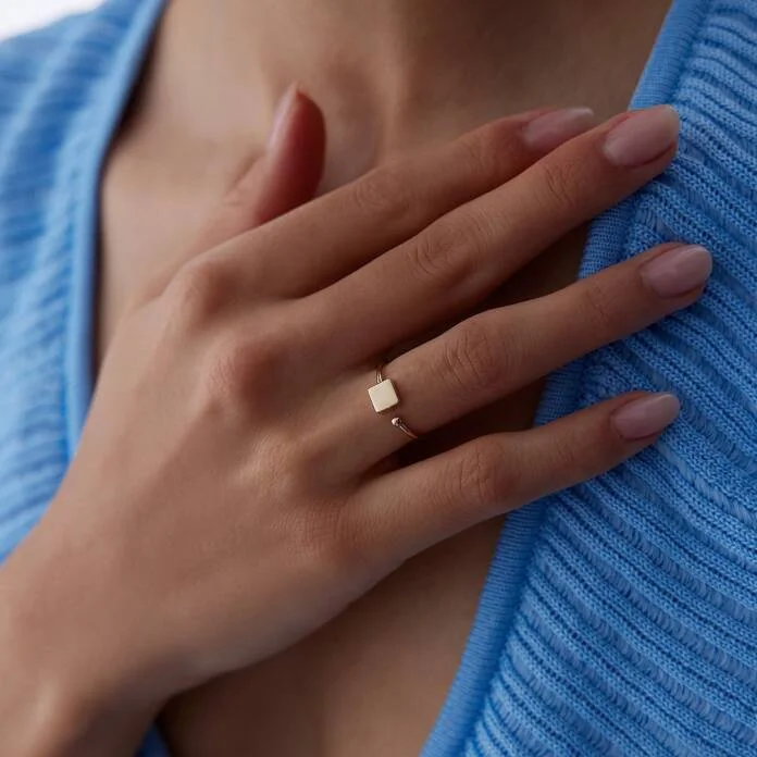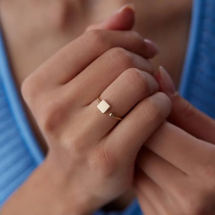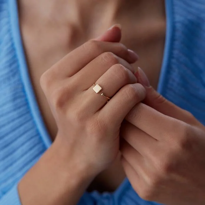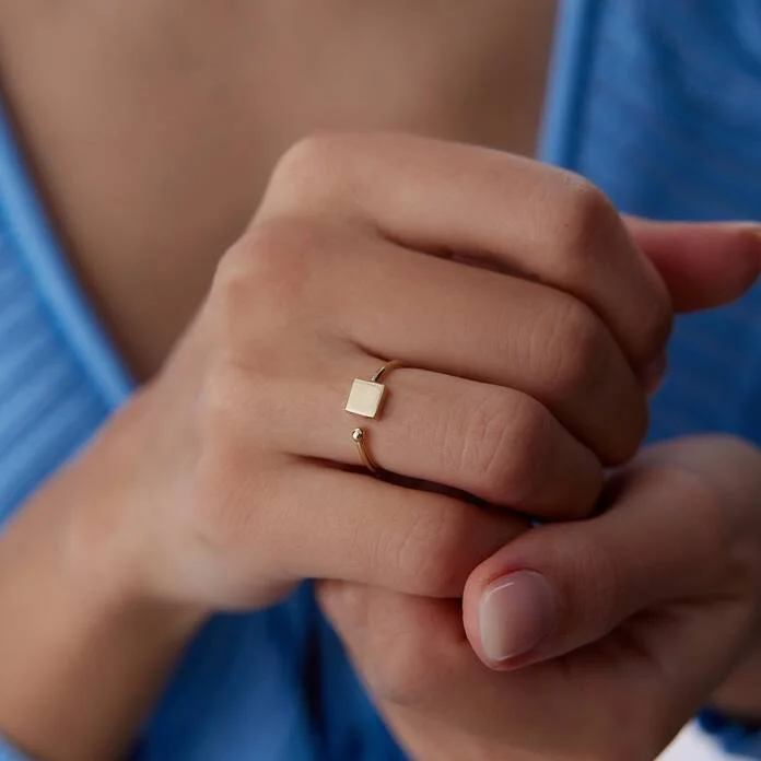 Kare Plakalı Kavuşan Yüzük: 14 Ayar Altınla Modern ve Şık Bir Duruş