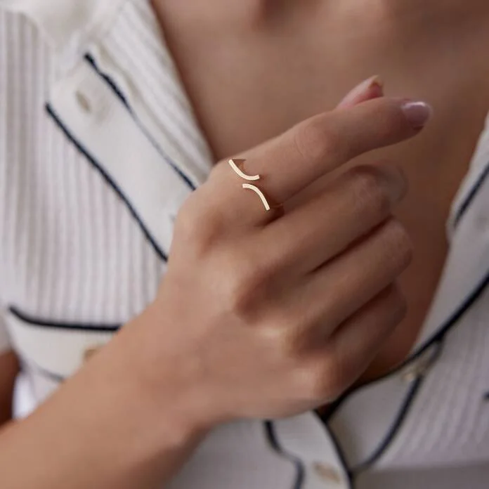 Kıvrımlı Yüzük, sade kombinlere modern bir dokunuş katar. Tek başına minimal bir şıklık sağlarken, ince taşlı yüzüklerle katmanlı şekilde kombinlenerek modern bir tarz yaratabilirsiniz.