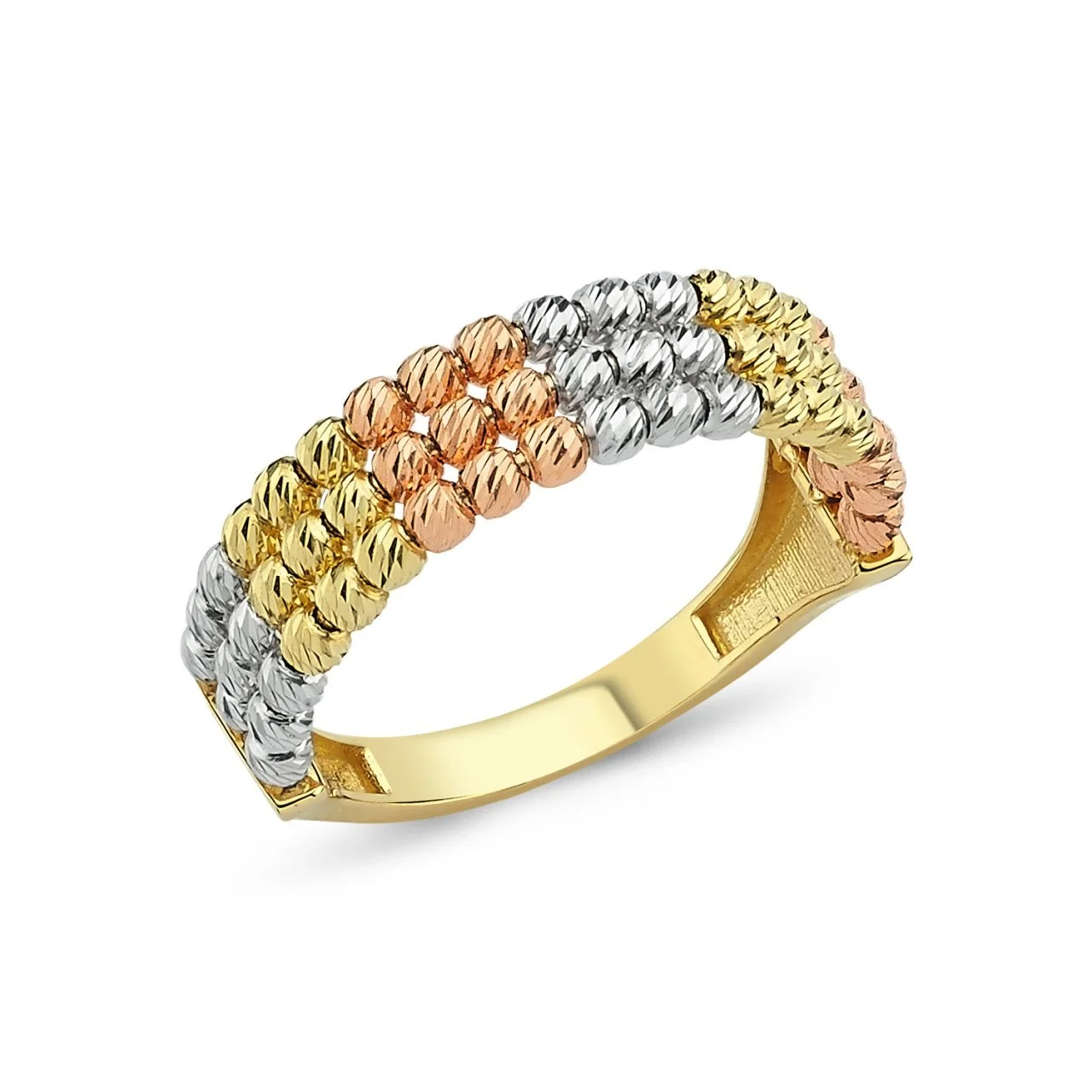 Üç Sıra Dorika Toplu Altın Yüzük, altın takılarda klasikleşmiş dorika toplarının eşsiz ışıltısını üç sıra formuyla zenginleştiren zarif bir tasarımdır. 14 ayar altının parlaklığıyla birleşen bu yüzük, hem geleneksel şıklığı yansıtır hem de modern bir duruş sergiler.
