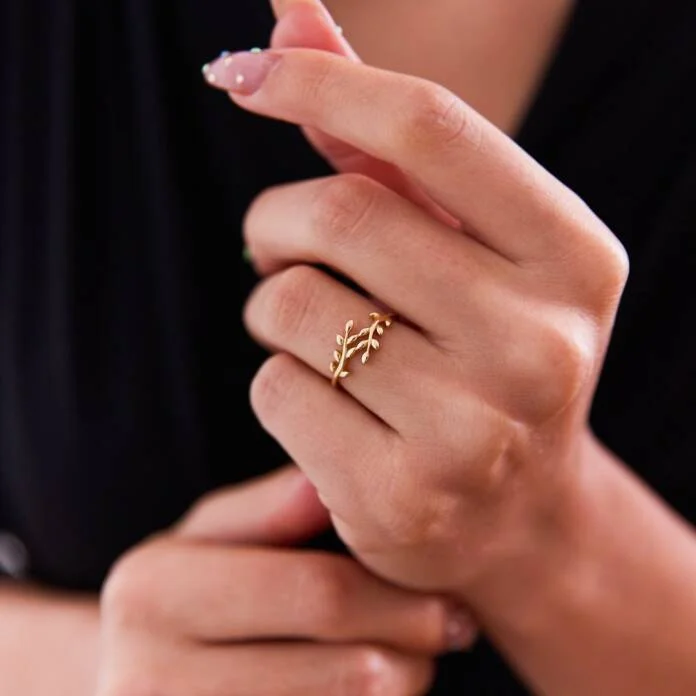 Zeytin Dalı Yüzük, 14 ayar altınla tasarlanmış barış, umut ve bereket sembolü bir parçadır. İnce yaprak detayları ve zarif formu, hem günlük kombinlerde hem de özel günlerde şıklık sunar. Doğayı sevenler ve anlam yüklü takıları tercih edenler için mükemmel bir seçimdir.