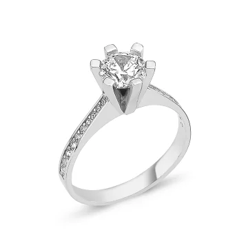 Altı Tırnaklı V Montür Taşlı Tektaş Altın Yüzük